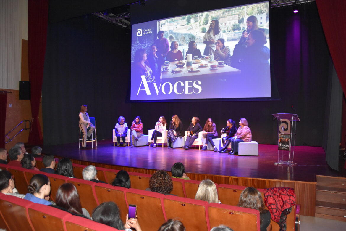 Ames, 8 de marzo de 2026.- O Concello de Ames, a través da Concellaría de Igualdade, celebrou hoxe o acto central de conmemoración do 8 de marzo, Día Internacional da Muller. Dito acto, presentado por Fátima Pego, realizouse no auditorio da Casa da Cultura de Bertamiráns e estivo protagonizado pola proxección do documental 8M A Voces, no que 9 mulleres de Ames comparten reflexións arredor da igualdade. Trala proxección realizouse un coloquio no estas 9 mulleres falaron das súas propias experiencias, e abriuse unha rolda de preguntas para o público. O acto pechou coa intervención da concelleira de Igualdade, Uxía García, e das voceiras dos grupos municipais políticos do Partido Popular, Oliva Agra; BNG, Escarlata Pampín; e Espazo Común, Luísa Feijóo.