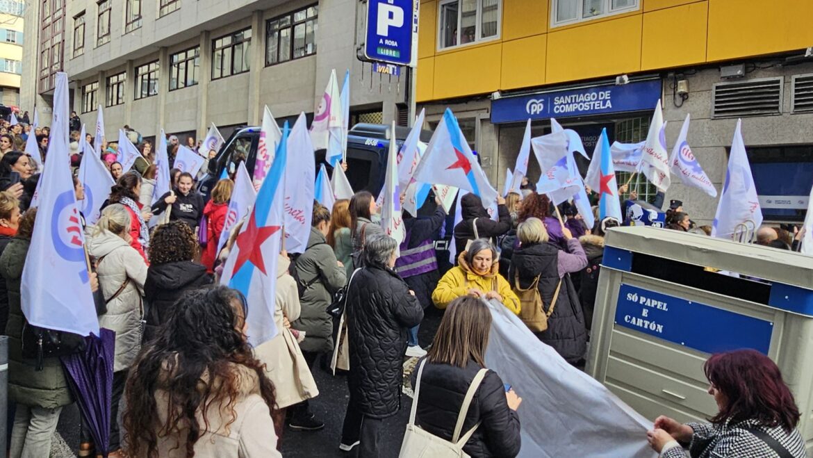 O persoal do Partido Popular de Santiago mantívose no día de hoxe, 25 de novembro, traballando escoltados pola Policía Nacional, despois de que a CIG ameazase con rematar a súa manifestación, que ten como lema “Retroceder en dereitos. Incrementa a violencia. Por unha Galicia con dereitos, traballo digno e igualdade”, na sede do partido popular de Santiago.