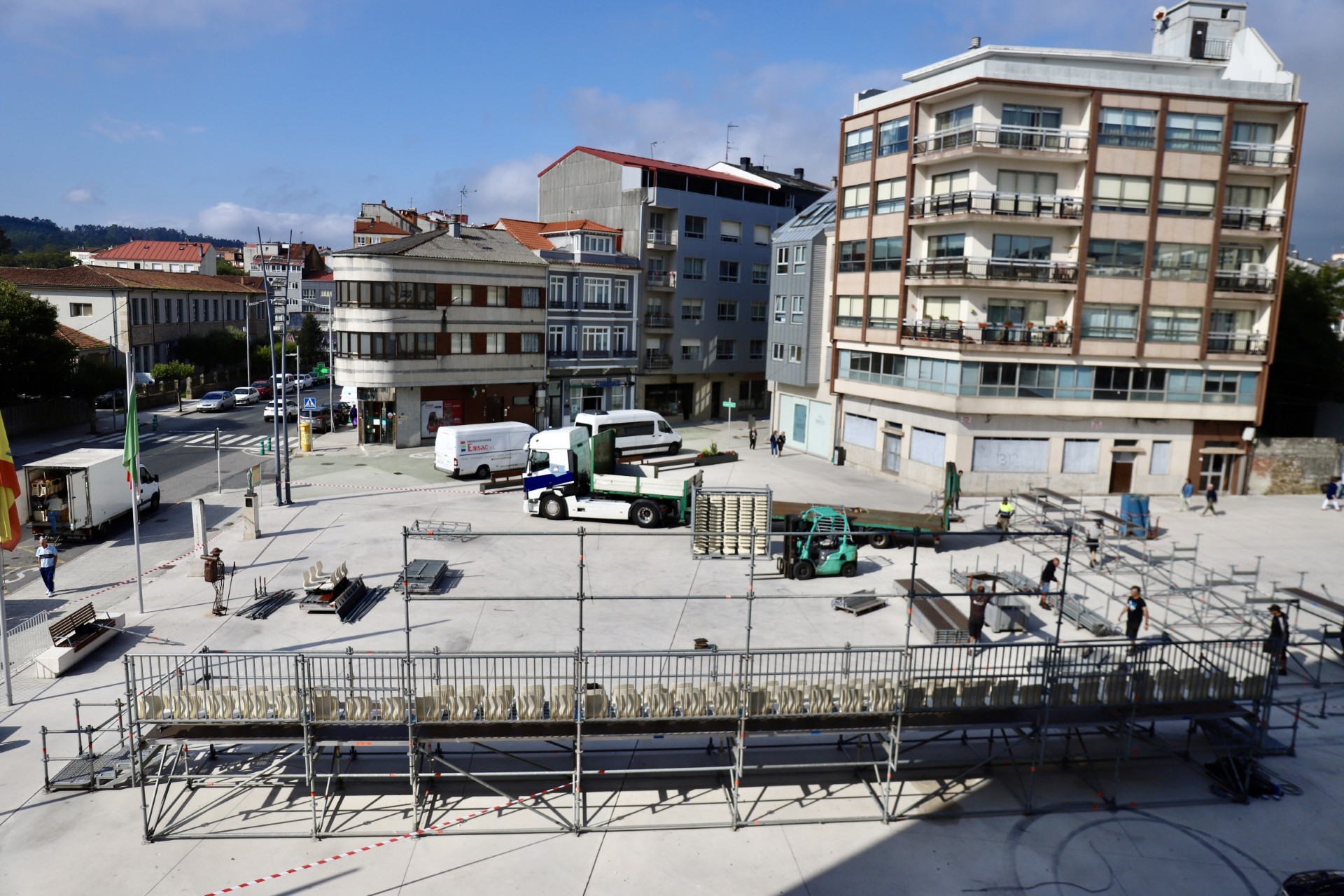A Estrada, 8 de outubro de 2025- A Federación Galega de Balonmán iniciou hoxe a montaxe das gradas e pistas para que a A Estrada se converta, dende este venres e ata o domingo, na cuarta sede da Copa 5×5 Balonmán na Rúa, organizada pola Deputación Provincial de Pontevedra e a citada federación. O evento inclúe á Estrada xunto con Vigo, Redondela e A Cañiza.
