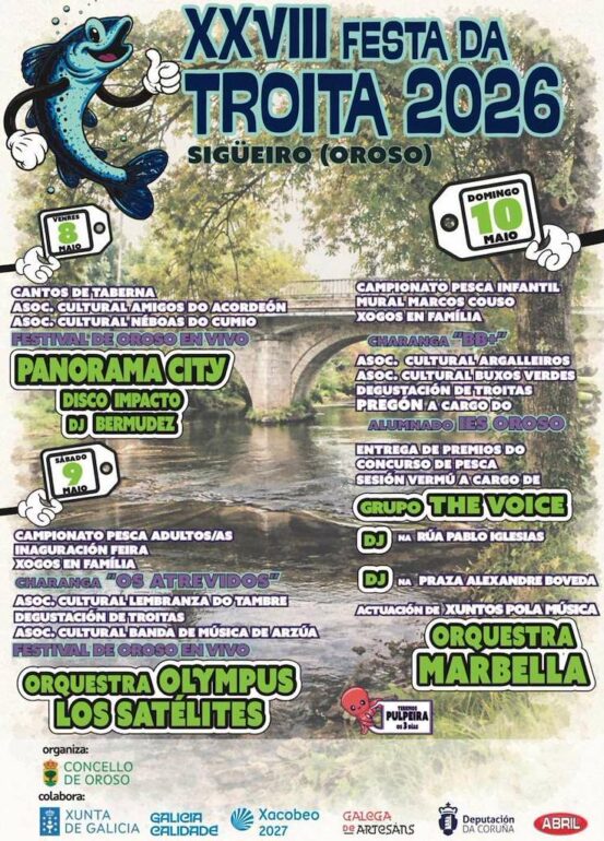 A Festa da Troita encara a súa 28ª edición consolidada como “a fin de semana máis importante do Concello”, en palabras do alcalde Álex Doval, quen destacou na súa intervención en Radio Líder Santiago o carácter identitario dunha celebración que “non só pon en valor un produto, senón que é un punto de encontro para veciños e visitantes”. A cita celebrarase o venres 8, sábado 9 e domingo 10 de maio, cun programa que combina gastronomía, música, tradición e participación cidadá.