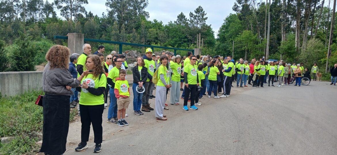 As persoas asistentes, ataviadas coas súas camisetas amarelas co logotipo da plataforma, protagonizaron unha mobilización visible e participativa, percorrendo o mesmo trazado polo que, de saír adiante o proxecto, circularían a diario numerosos camións cargados de materiais de obra.