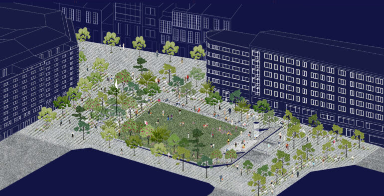 A proposta permite gañar a praza para a cidadanía, aproveitar a viseira que cobre o acceso ao párking para facer un pequeno anfiteatro para unha zona aberta con tratamento vexetal (que se poderá aproveitar para un pícnic, por exemplo), rodeado de árbores e cun pavimento de calidade, mantendo a zona de xogos infantís. “Este anteproxecto crea unha praza onde agora mesmo non a hai mantendo o estacionamento no subsolo”, destacou.