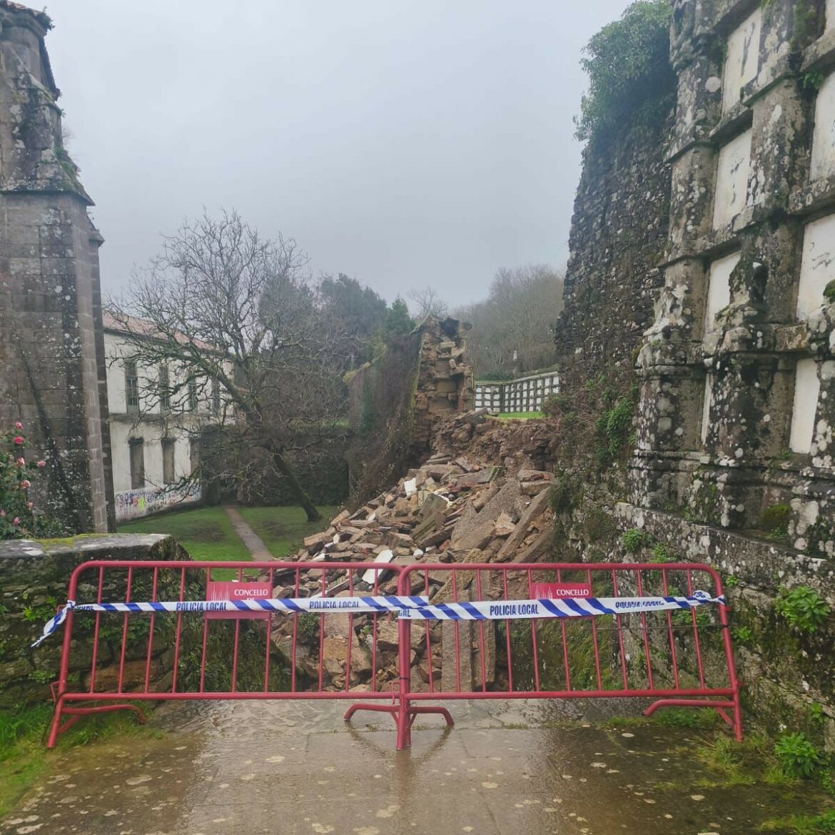 Onte pola mañá (12 de febreiro) constatouse a derruba dun pano dunha parte muro do cemiterio de Bonaval (15 metros de lonxitude por 6 metros de altura). Segundo sinalou a alcaldesa, “os servizos municipais de Obras e Arqueoloxía desprazáronse inmediatamente” e, de forma paralela, por motivos de seguridade, “tomouse a decisión de perimetrar a contorna e pechar o acceso á zona da ábsida da igrexa de Bonaval, ao espazo do cemiterio e á zona de parque adxacente para evitar posibles riscos por novos desprendementos”.