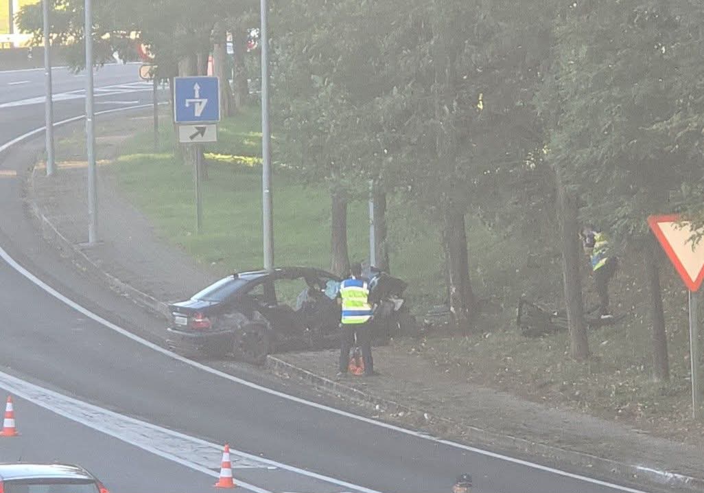 Dos personas resultaron heridas graves en la tarde de este domingo después de que el coche en el que viajaban se saliera de la vía e impactara contra una farola y un árbol cerca del puente de San Marcos, en Santiago de Compostela.