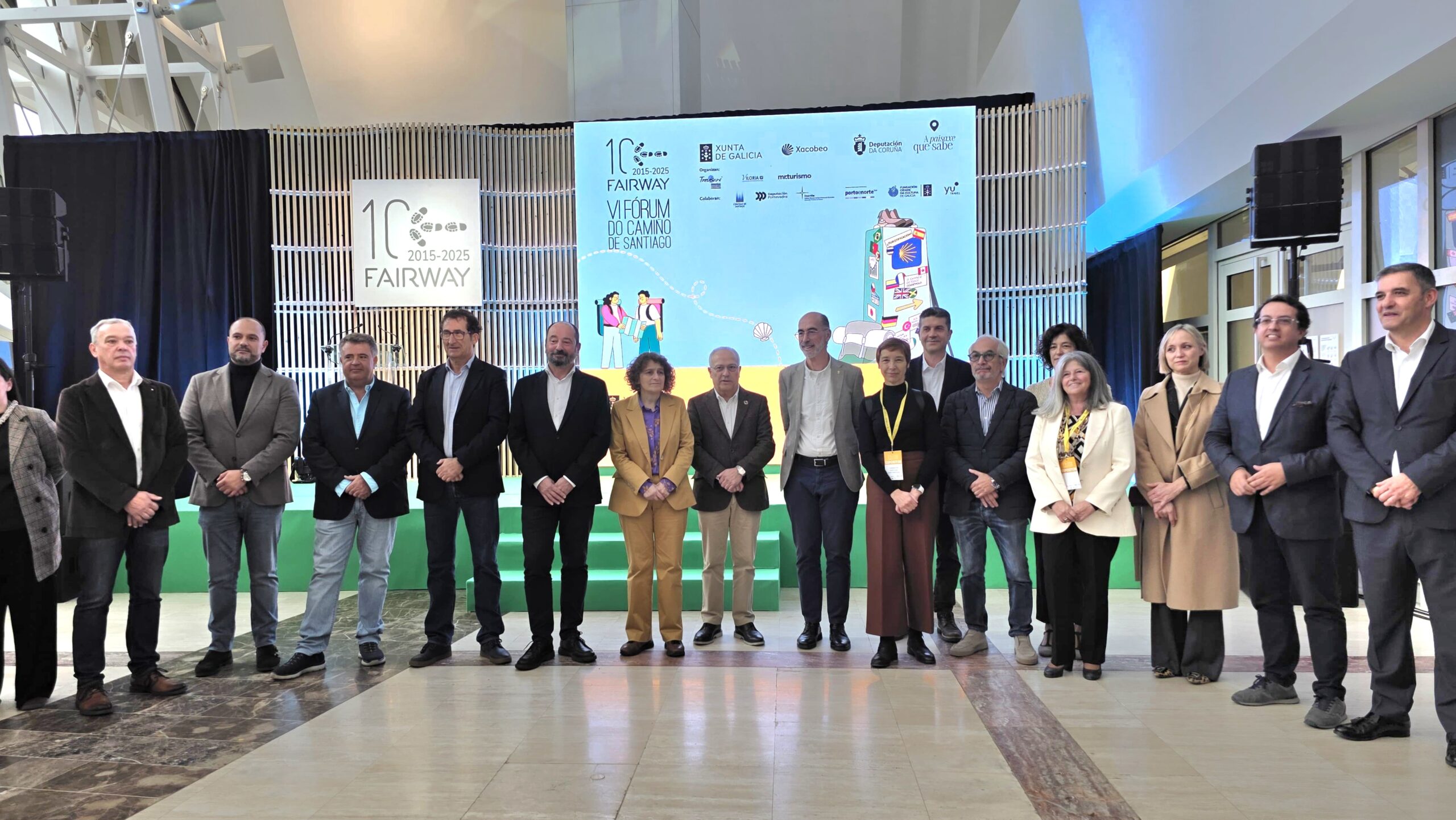 Santiago de Compostela, 9 de noviembre de 2025. Fairway ha abierto esta mañana sus puertas celebrando su décimo aniversario como ejemplo de profesionalización del sector vinculado al Camino de Santiago. Una perspectiva en la que coincidieron las autoridades participantes en la inauguración oficial del evento y que contó con la presencia del director de la Axencia Turismo de Galicia, Xosé Manuel Merelles; el diputado delegado de los Caminos de Santiago en la Diputación de A Coruña, Antonio Leira; la alcaldesa de Santiago, Goretti Sanmartín, y los tres codirectores de esta cita, Tono Mugico (Mr Turismo Marketing en Acción), Ana Trevisani (Trevisani) y Manuel Oreiro (Viajes Viloria).