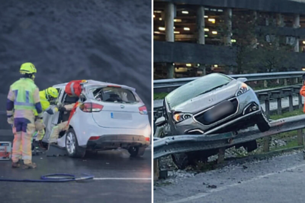 De manera casi simultánea, se registraron dos accidentes en la AP-9 a su paso por la capital gallega, a las 8.28 y 8.32 horas. Ambos se saldaron con heridos. El más aparatoso ocurrió en la salida 67, que comunica Santiago con el barrio de San Lázaro, en sentido A Coruña, donde se vieron implicados cuatro coches.