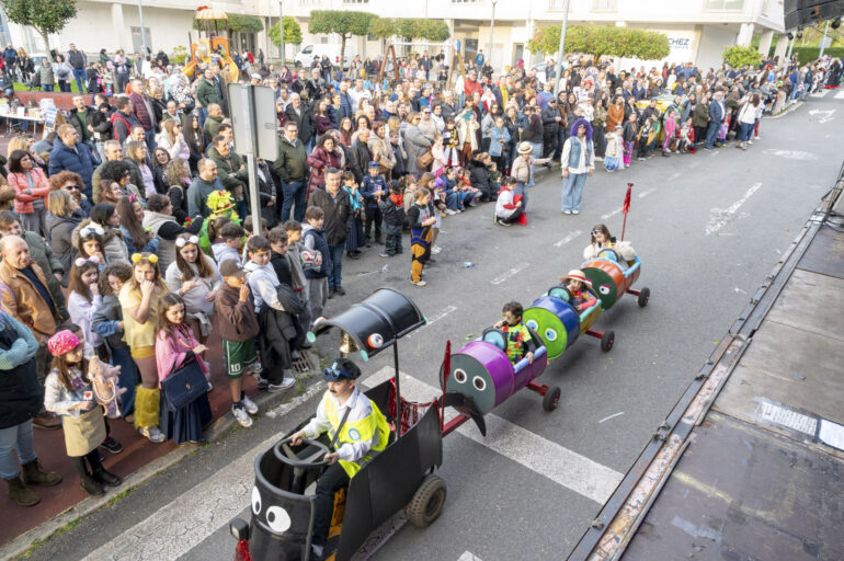 O Pino. 23-2-26.- O primeiro desfile de Entroido organizado polo Concello do Pino foi todo un éxito. Máis de 200 persoas participaron no XXVI Concurso de disfraces e percorreron as rúas do pobo nun desfile que foi seguido por numeroso público e celebrado este domingo de Piñata tras ser aprazado a semana anterior polo mal tempo.