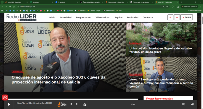 Nunha entrevista en Radio Líder Santiago, o director de Turismo de Galicia, Xosé Manuel Merelles, debullou as principais liñas estratéxicas do sector turístico galego nun contexto que definiu como “o mellor momento histórico” en termos de visitantes, ingresos e proxección internacional. A conversa percorreu desde iniciativas consolidadas como a Primavera de Portas Abertas nas rutas do viño ata grandes eventos futuros como o eclipse do 12 de agosto ou o Xacobeo 2027.