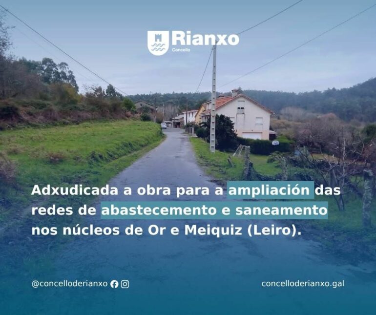 O Concello de Rianxo vén de adxudicar dúas importantes actuacións en materia de abastecemento, saneamento e mellora viaria, que permitirán avanzar na modernización das infraestruturas municipais en distintas parroquias.