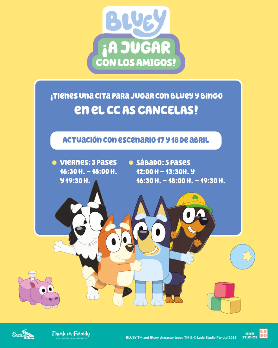 El próximo 17 y 18 de abril, As Cancelas se convertirá en el punto de encuentro para familias y niños de Santiago de Compostela con la llegada de los personajes principales de la famosa serie infantil “Bluey”. Bajo el título “Bluey y Bingo Dates”, el espectáculo en directo estará enfocado en el valor de la amistad y las relaciones entre los personajes de la serie.