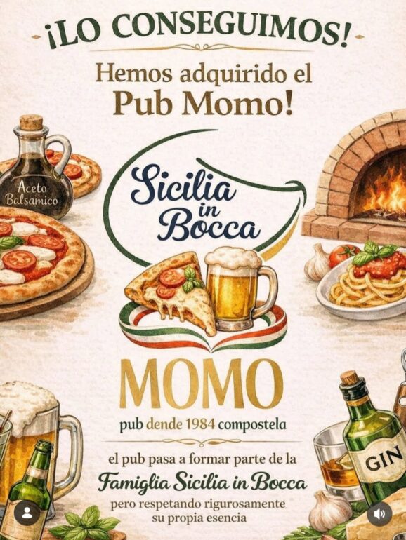 Sicilia in Bocca ha anunciado la adquisición del conocido Pub Momo, un establecimiento con más de cuatro décadas de historia en Santiago de Compostela. La operación marca el inicio de una nueva etapa para ambos negocios, que, según sus propietarios, estará basada en la continuidad y el respeto por la esencia que ha convertido a Momo en un lugar de referencia.